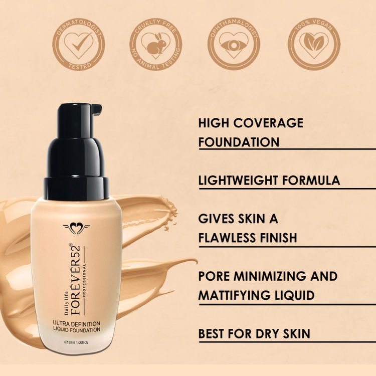Get flawless, blemish-free skin using the mineral rich and water-based formula foundation. Dailylife Forever52 once again impresses the professionals of the beauty world by their Daily Life Forever52 Ultra Definition Liquid Foundation. Unlike other HD Liquid Foundations that offer an overdone, cakey look, this light-weight foundation formula seamlessly blends with your skin and naturally covers skin imperfection and enhances your skin tone. Furthermore, the oil free formula offers a full coverage matte finish offers full coverage.