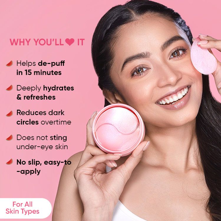 Description : Flaunt smooth, hydrated and luminous under-eye skin with the shimmery Dot & Key Watermelon Cooling Hydrogel Eye Patches. Punched with the benefits of juicy watermelon, hyaluronic acid, niacinamide and caffeine, they work hard to depuff, hydrate and brighten under-eye skin in just 15 minutes with an instant cooling sensation to give you fresh, more awake-looking eyes.