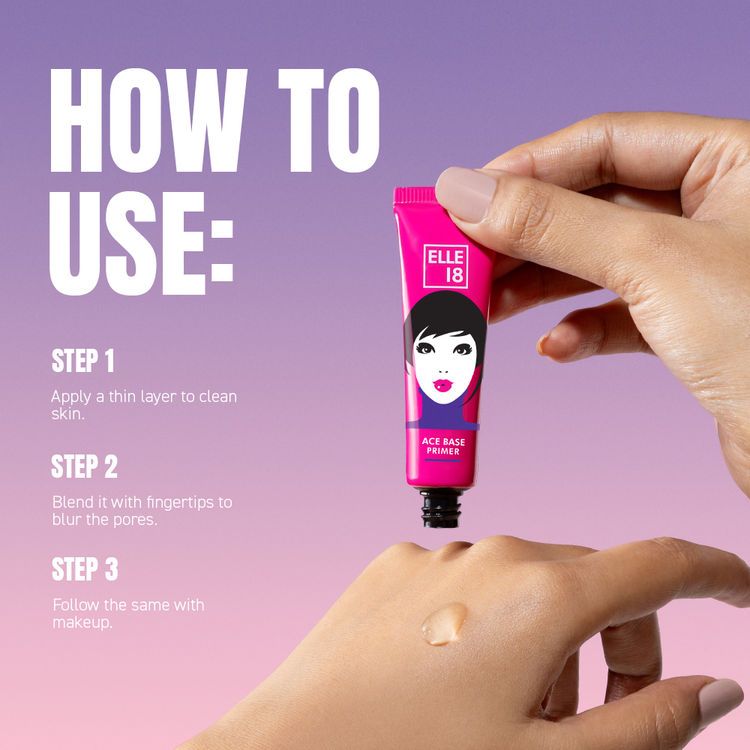 Description : Worried about skin pores showing? Not so sure of the uneven skin texture and blemishes? Or stressed about flaky makeup? Don’t worry girl, we got you covered! We bring you the Elle 18 Ace Base primer which is exactly what you need!With Vitamin E, the primer moisturizes and nourishes the skin. It blurs out the skin pores, blemishes, and evens out the skin texture so you can rock that smooth, flawless skin all the time!With a water-resistant formula, the primer stays for a long time and makes sure that your makeup does too. The gel-based primer provides a perfect, invisible layer of perfectly smooth canvas that ensures the makeup that comes over it doesn’t get flaky.The lightweight primer is super easy to apply and has an amazing payoff! It’s truly fantastic how just a small amount of this Elle 18 primer can up your makeup game by several levels!No matter where you go, what you do, be it be a Saturday brunch, a mid-day shopping spree, a concert in the middle of June or a simple night out, this primer is all you need to stay at the top of makeup game.Get the Elle 18 Foundation to complete the flawless, long-stay, glowing makeup look.