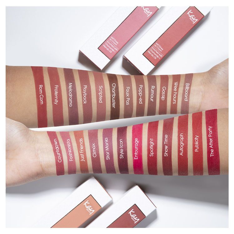 Description :Kay Beauty Matteinee lip crayon combines unrivalled 18 hour long stay and extreme matte finish with ultra comfort. This smudge proof lip crayon delivers a high colour payoff while feeling weightless on the lips making your lips feel feathery soft and light. The overachieving lip crayon is 100% waterproof & sweatproof so your lip hue stays intact when the sun goes up. Enriched with the miraculous Marula & good for you Chamomile oil, the lip crayon ensure to keep your lips well hydrated and nourished while you are looking glam. Housed in Kay's classic monogram, it comes in 24 attractive shades from barely there nudes to high drama hues, specially curated for all Indian beauties.