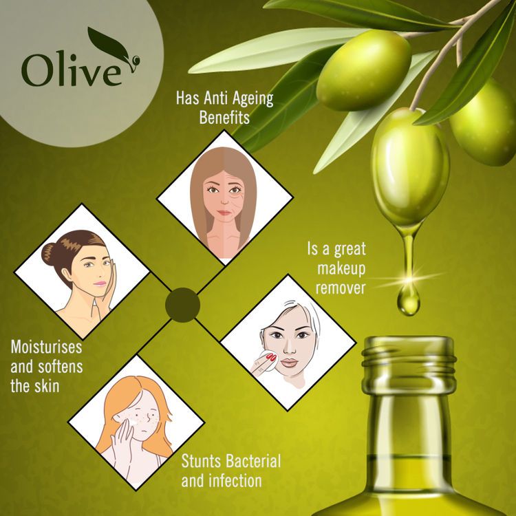 Olive Oil: The olive oil with vitamin E keeps skin moisturized and vitamin K helps in removing scars, dark circles, and stretch marks.