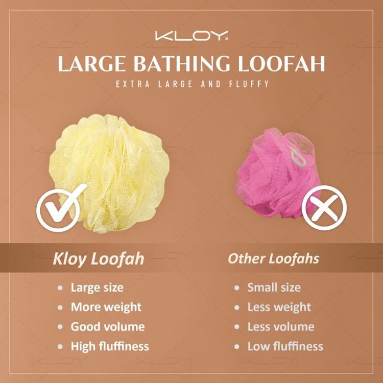 Large and fluffy: Kloy Bath Loofah comes in a large size and has more weight and volume.