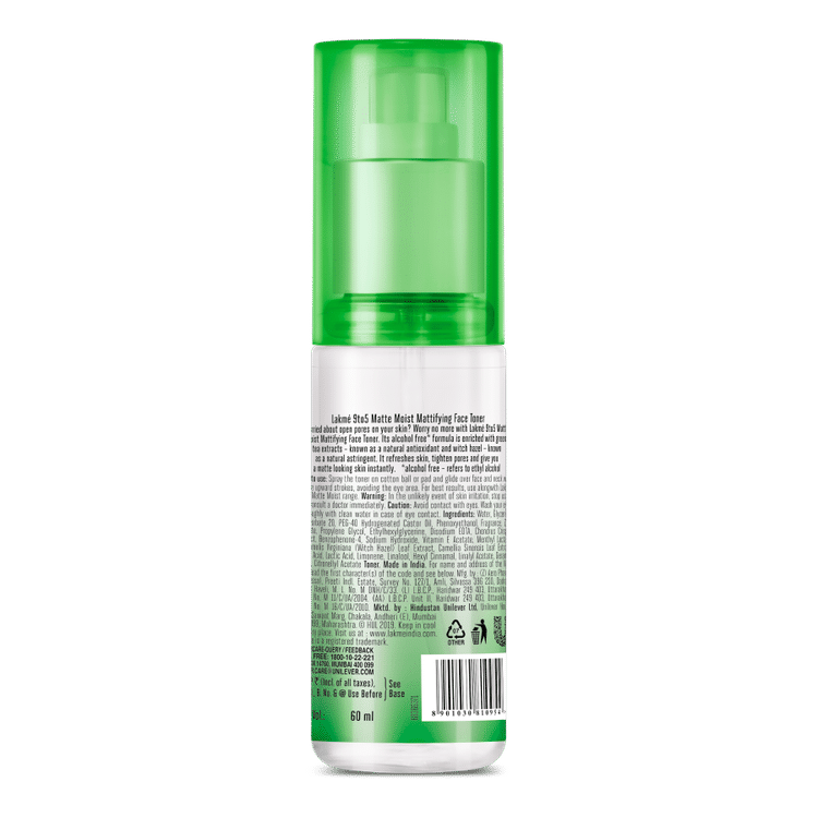 Description :The Lakme 9 To 5 Moist Matte Mattifying Face Toner is your secret weapon for a flawless complexion. This toner is enriched with the goodness of matte powders that control excess oil, leaving your skin fresh and shine-free. It minimizes pores, tightens the skin, and gives a smooth, matte finish. The 9 To 5 Moist Matte Mattifying Face Toner is perfect for daily use and is suitable for all skin types. Add this toner to your skincare routine for beautiful, radiant skin all day long.