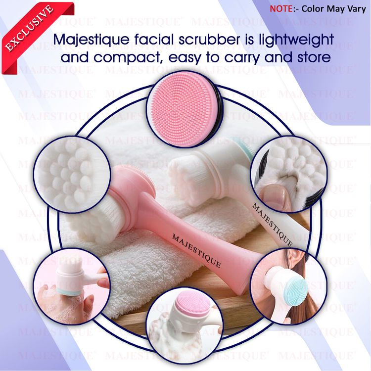 Description :Taking care of your skin starts with this Majestique manual cleansing brush that allows you to remove makeup, residue, and dust that could potentially clog your pores. This amazing dual-sided face brush allows you to gently clean your face and enjoy smooth and soft skin. Both the fiber facial cleansing brush and the silicone pad of the facial cleansing brush are easily detachable, is easy to clean so you can use it over and over again. This premium cleaning brush is manual so you don't need to charge it or replace batteries. Order this exfoliating brush for yourself or as a lovely present for your loved ones. Use this dual-action brush with your favorite foam or gel cleanser and pamper your skin.
