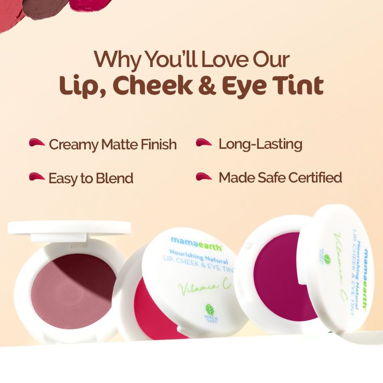 Description :The Mamaearth Nourishing Natural Lip Cheek & Eye Tint in shade 03 Rose Pink is perfect to add a touch of color to your lips, cheeks, and eyes. Enriched with Vitamin C and Rose, this tint not only enhances your natural beauty but also nourishes and moisturizes your skin. The lightweight formula glides smoothly and offers a long-lasting tint that stays put all day. Achieve a gorgeous rosy glow with this versatile and eco-friendly makeup essential.