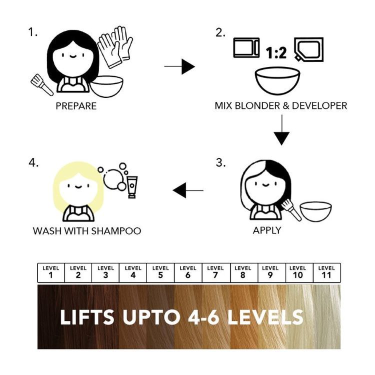 Mix Blonder Powder and Developer in a 1:2 ratio in a glass/ plastic bowl.
