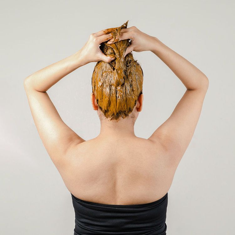 Pour the henna paste in a bowl and stir. Apply evenly on hair and roots.